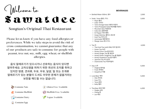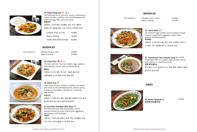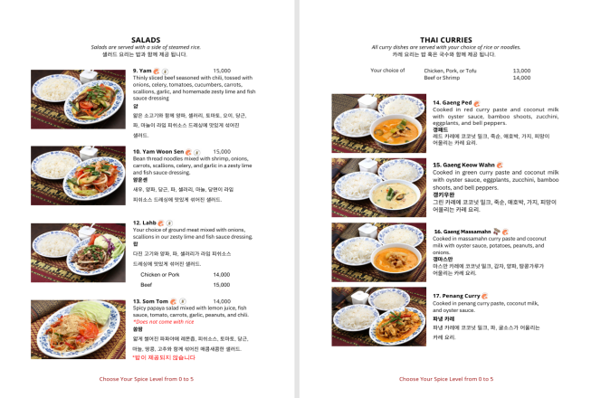 14,000원 얇게 썰어진 파파야에 레몬즙,피쉬소스,토마토,당근,마늘,땅콩,고추와 함께섞어진 매콤새콤한 샐러드