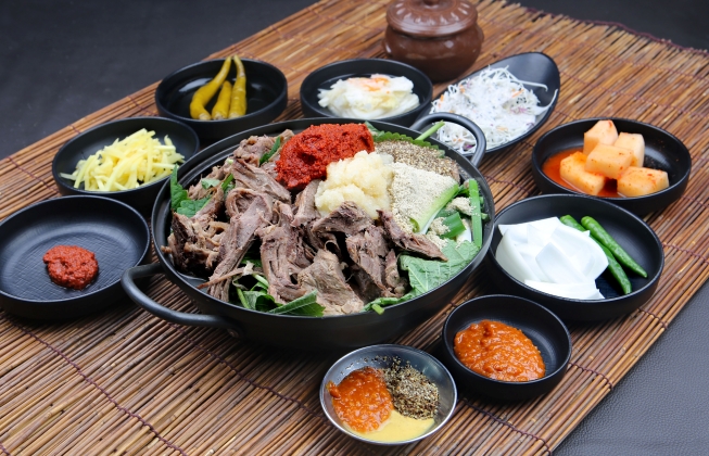 30,000원(1인) 2인이상주문/깊은 육수와 담백한 맛의 흑염소전골